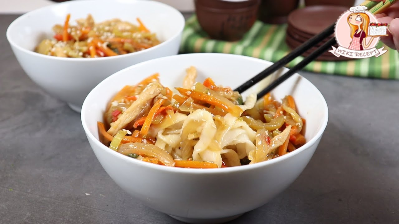 Видео-рецепт лапши удон с курицей и овощами